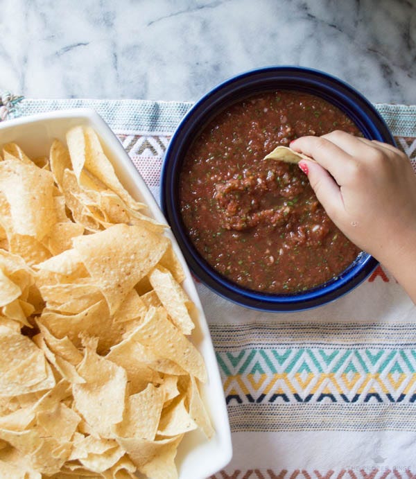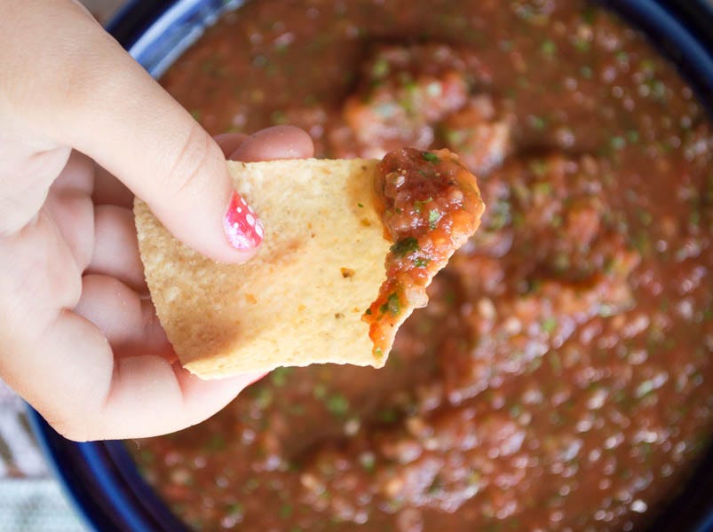 The Salsa falls somewhere between the freshness of a pico de gallo and a jar of salsa. It’s uncannily similar to what you get at your favorite local Mexican restaurant. It’s semi-homemade, it’s fresh, it’s cheap, it’s customizable, it comes together in less than 5 minutes! It makes a ton. I have not bought a jar of salsa in YEARS friends. YEARS!